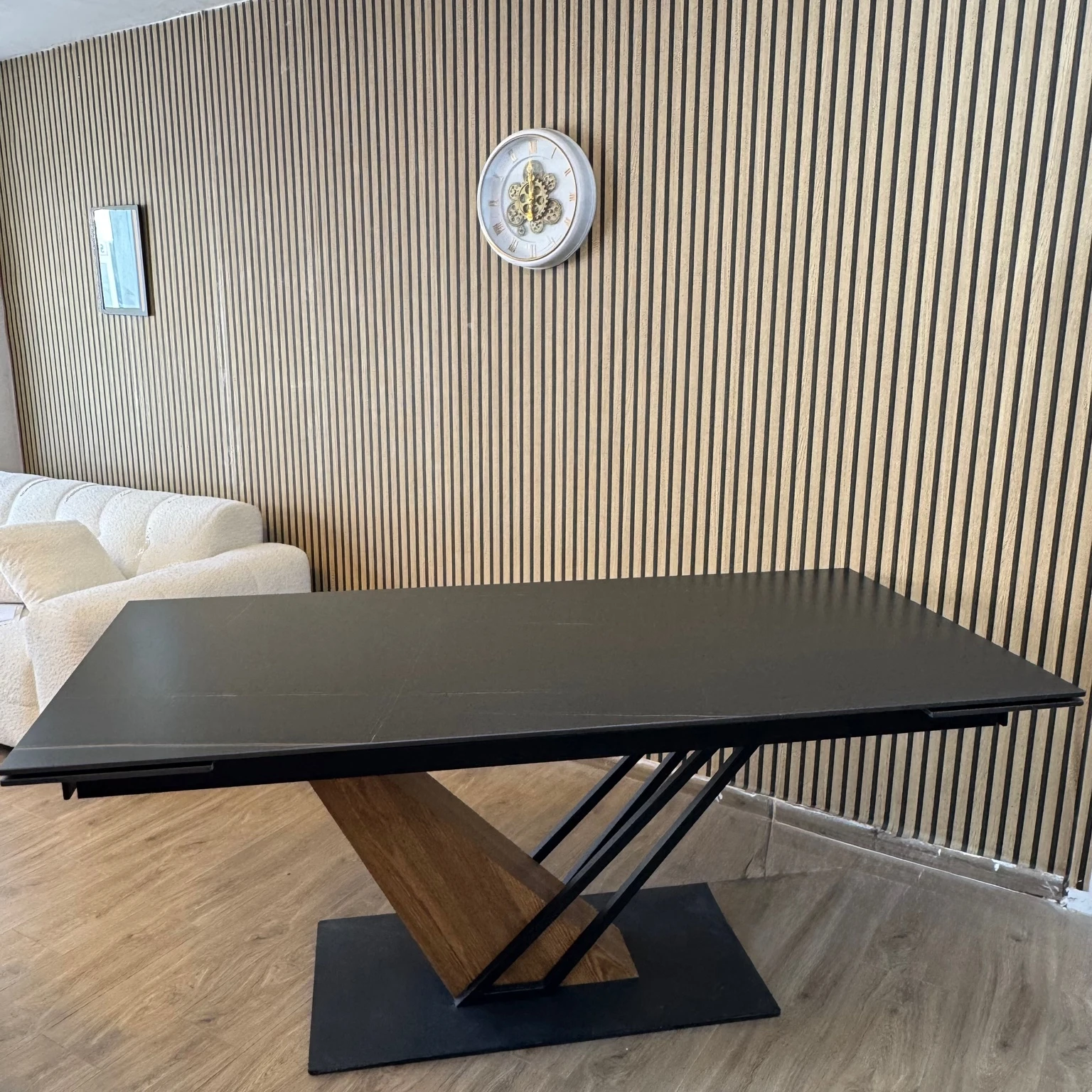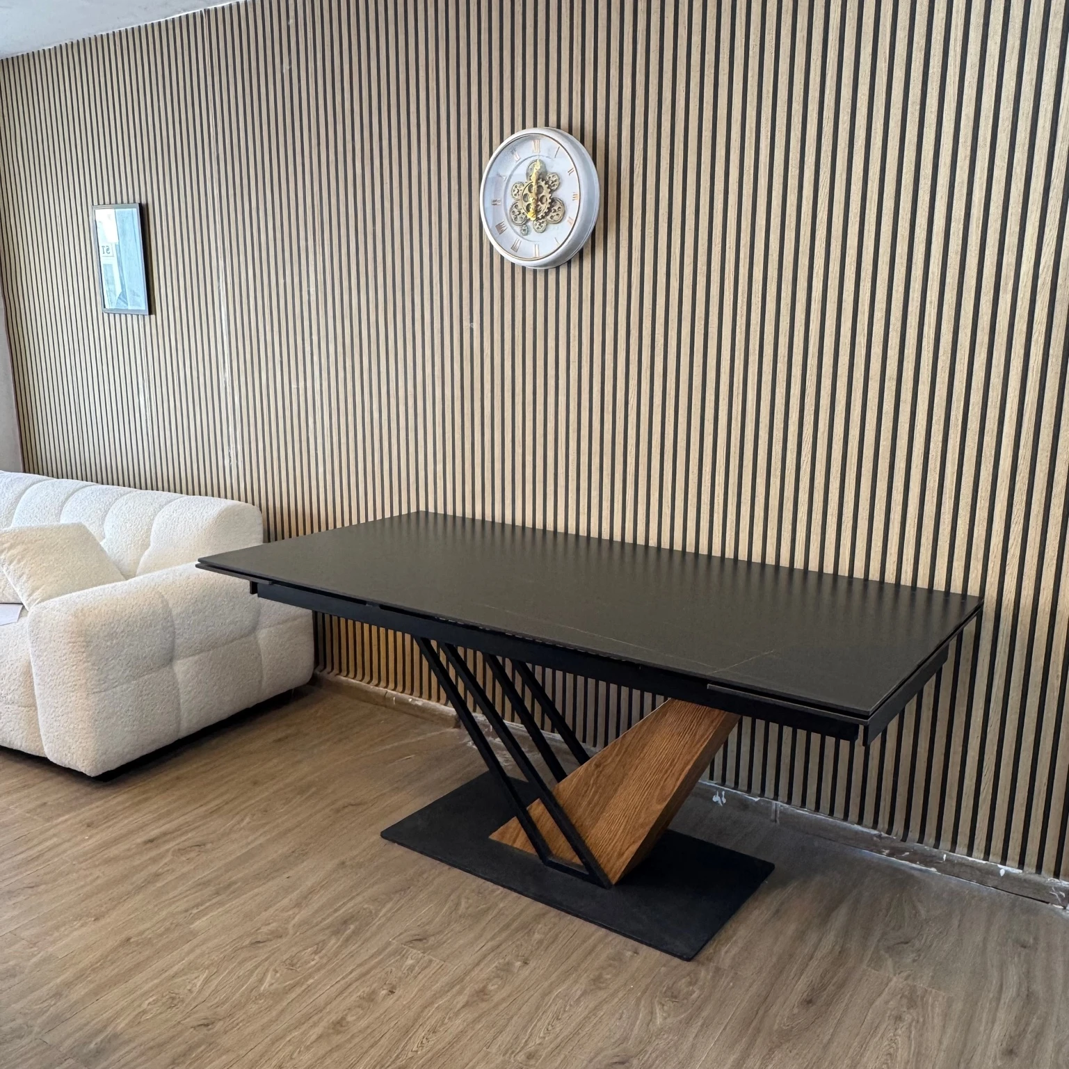 שולחן קרמי בצבע שחור אלגנטי, עם בסיס מתכת חזק במיוחד