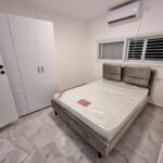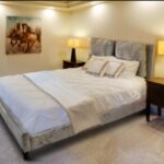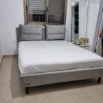 מיטה זוגית בעיצוב נקי ונעים בראש המיטה, זוג כריות נפוחות המפנקות ביותר למיטה, רגליים מעוצבות גבוהות, מסגרת המיטה, עץ סנדוויץ' איכותי