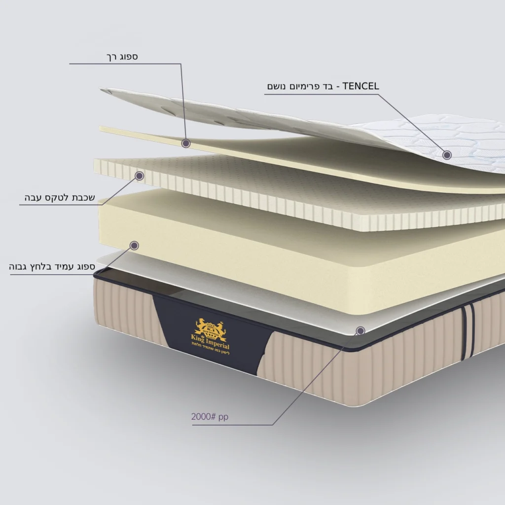 הלטקס מרגיש גמיש וחי — הוא מגיב לתנועה, מחזיר תמיכה מידית, מפזר לחץ בצורה חכמה ומעניק תחושת רכות “אלסטית” בלי לשקוע.